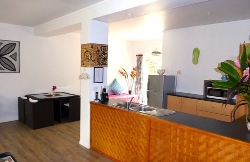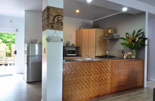 Use the complimentary kayaks to paddle around Taakoka island (motu) where our guests have commented on the great snorkeling or take a 2 minute stroll along the beach the restaurants and bars for happy hour or a bite to eat. Don't worry if you are so relaxed you dont want to leave the house as a full kitchen with BBQ outside, fridge freezer and dishwasher are available for you.