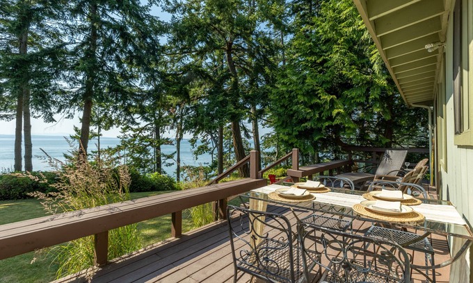 Welcome to Mutiny Bay Waterfront Cabin, your seaside haven on Whidbey Island. Nestled on the serene west side of Mutiny Bay, this medium-bank, two-bedroom retreat promises relaxation and adventure in equal measure.