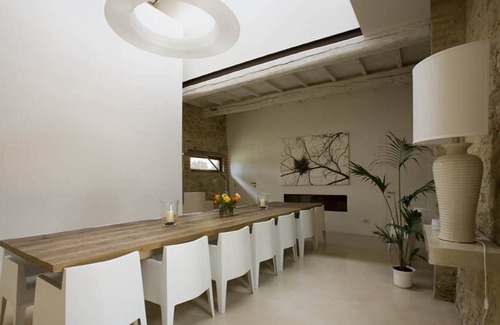 Nevertheless the villa is provided with all kind of modern facilities and it offers all comforts for an unforgettable holiday. The villa consists of two separate buildings, which are connected by a glass corridor. Both the old tower and the hay barn have been completely restored with old brick floors and wooden ceilings, featuring the best of contemporary Italian design.