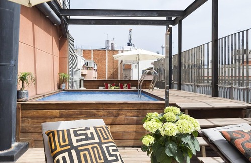Newly renovated apartment with a communal pool and terrace on the roof of the building and fully equipped and furnished of 80 m2, located in a building with an elevator and in the heart of Barcelona, in front of the imposing Arc de Triomphe.
