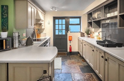 The well-appointed kitchen diner is a focal point of the cottage, providing a welcoming space for communal meals and gatherings. The kitchen is fully equipped with modern appliances, allowing guests to prepare delicious meals, a perfect spot to enjoy breakfast or dinner with loved ones. The cosy living room is designed for relaxation, featuring comfortable furnishings and a rustic wood burner. After a day of seaside adventures, guests can unwind on the plush sofas, enjoying the warmth of the fire.