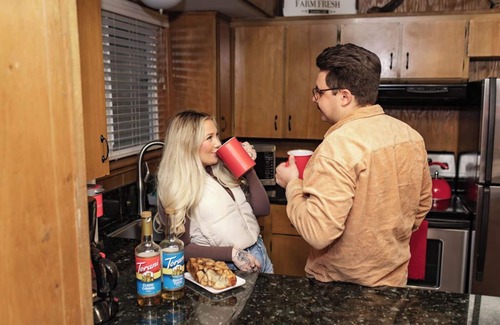 When you're spending time inside, you'll have all the comforts of home, including high-speed internet, a smart flat-screen TV in the living room. Cozy up next to the retro wood burning fireplace, we provide the wood!