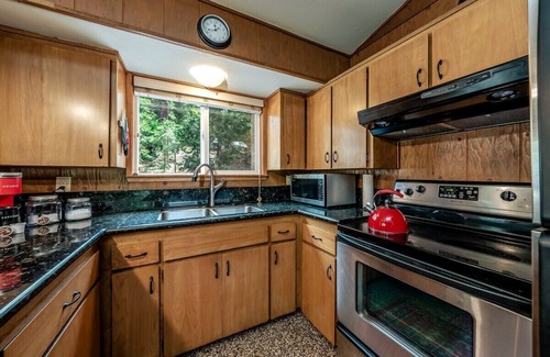 Welcome to Mystic Meadow Cabin! This cute cabin overlooks a lovely meadow full of Lupine flowers in the spring! This little cabin has it all, a open floor plan with new Retro fireplace. The sliding glass doors take you to the large wood deck which overlooks the meadow area and forest, a perfect, private area to enjoy a BBQ with friends or a good book.