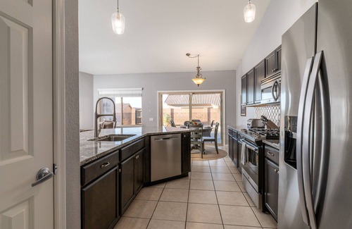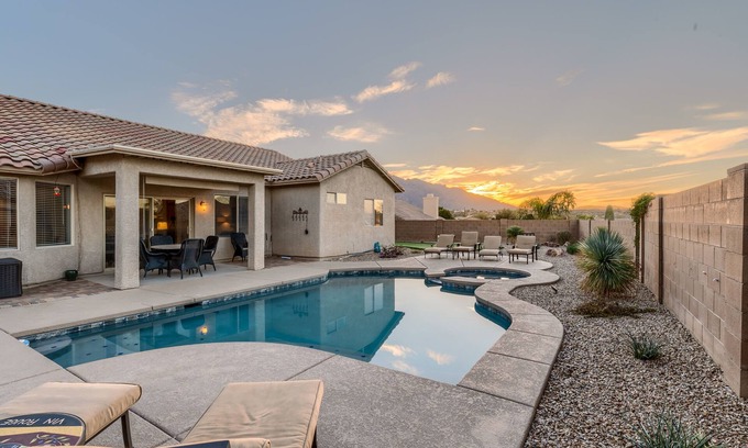 Welcome to Mystic Mountain, your home away from home! See more details using the photo expand button in the lower left corner of the featured picture. Our professionally decorated home features beautiful, comfortable furnishings, flat screen tvs with over 100 channels, a kitchen stocked with everything you'll need, wonderful pillowtop mattresses with premium sheets and bedding. Step outside and enjoy the covered patio, pool with built-in spa or relax on chaise lounges on the cool decking patio. You can even elect to heat the pool (extra fee - $400.00 per week). Soak up the Arizona sunshine, or raise the umbrella and nap in the shade. Watch the colorful sunsets as you bar-b-que on the gas grill, or simply relax with a glass of wine . You may not want to leave the house and back yard! Please take a look at our other home - Property ID 7936573 located in the same neighborhood.