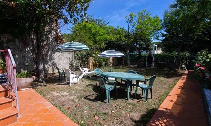 Front and back garden equipped with table, chairs and barbecue - wonderful roof solarium with sea view.
