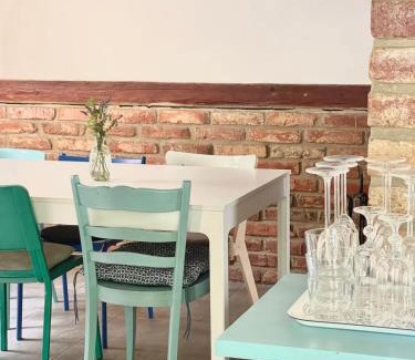Food & DrinkTea/Coffee makerBathroomTowels, Shampoo, Bathtub, Guest bathroom, Free toiletries, Body soap, Toilet paper, Private bathroom, Hairdryer, Bathtub or showerKitchenCleaning products, Kitchenware, Wine glasses, Toaster, High chair, Stovetop, Dishwasher, Electric kettle, Kitchen, Oven, Refrigerator, Washing machine, Microwave, Dining tableLiving AreaDining area, Fireplace, Sitting areaGeneralHardwood or parquet floors, Heating, Private entrance, Trash cans, Tile/Marble floor, Fire extinguisherViewView, Garden viewBedroomWardrobe or closet, LinensOutdoorsOutdoor furnitureBuilding CharacteristicsSemi-detachedRoom AmenitiesClothes rack, Drying rack for clothing, Socket near the bedCleanliness & disinfectionHand sanitizer |