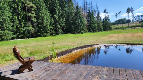 This beachfront property offers access to a terrace, free private parking, and free Wifi. Outdoor seating is also available at Na samotě u lesa. The vacation home is composed of 2 bedrooms, a fully equipped kitchen, and 1 bathroom. Towels and bed linen are available in the vacation home. There's also a seating area and a fireplace. Guests at the vacation home can enjoy cycling nearby, or make the most of the garden. The nearest airport is Pardubice Airport, 45 miles from Na samotě u lesa.