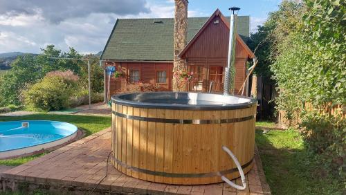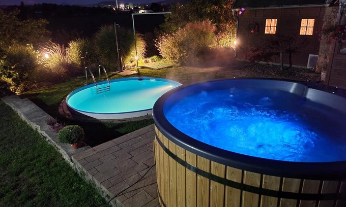 Housed in a building dating from 2004, this chalet is 26 miles from the Aquapark Staré Splavy. There's a sun terrace and guests can use free Wifi and free private parking. The air-conditioned chalet consists of 2 bedrooms, a living room, a fully equipped kitchenette with a dishwasher and a coffee machine, and 1 bathroom with a bath and a hair dryer. Towels and bed linen are offered in the chalet. There's also a seating area and a fireplace. Na vyhlidce also offers a pool with a view and a hot tub for guests to relax in. There is a garden with a barbecue at this property, and guests can go hiking nearby. Vaclav Havel Prague Airport is 47 miles from the property.