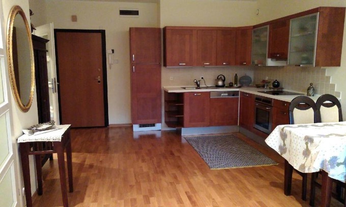Located in Jurata, just less than 1 km from Jurata Beach, Nad Zatoką provides accommodation with a garden, a terrace, a restaurant and free WiFi. Boasting free private parking, the apartment is in an area where guests can engage in activities such as hiking, fishing and cycling. Featuring a DVD player, the apartment has a kitchen with a fridge, a dishwasher and an oven, a living room with a seating area and a dining area, 2 bedrooms, and 1 bathroom with a bidet and a shower. A flat-screen TV with cable channels, as well as a CD player are provided. Jastarnia Beach is 2.2 km from the apartment. The nearest airport is Gdańsk Lech Wałęsa, 78 km from Nad Zatoką, and the property offers a paid airport shuttle service.
