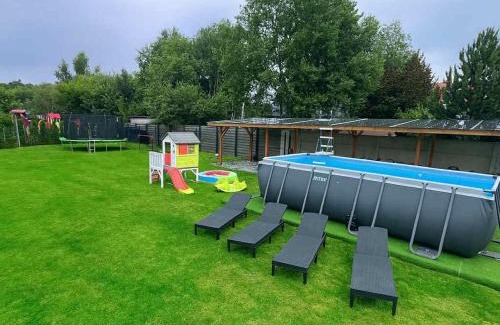 NADMORSKI RESORT in Niechorze provides accommodations with a seasonal outdoor swimming pool, free bikes, and barbecue facilities. This property offers access to a balcony, free private parking, and free Wifi. The vacation home offers an outdoor fireplace and a 24-hour front desk. The vacation home provides guests with a terrace, garden views, a seating area, satellite flat-screen TV, a fully equipped kitchen with a dishwasher and an oven, and a private bathroom with shower and a hair dryer. A toaster, a fridge, and stovetop are also offered, as well as a kettle. At the vacation home, all units are allergy-free and soundproof. For guests with children, NADMORSKI RESORT provides outdoor play equipment and a baby safety gate. A water park and kids pool are available at the accommodation, while guests can also relax in the garden. Rewal Beach is a 16-minute walk from NADMORSKI RESORT, while Kołobrzeg Railway Station is 30 miles from the property.