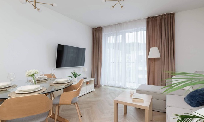 Nadmorskie Tarasy 9 Gdynia | Apartment with Parking has 2 Bedrooms , 1 Bathroom, and max occupancy of 5 people. The minimum rental for this property is 1 nights, but this can change depending on the season you plan on staying. Previous guests have given good rated it, and VRBO labeled it a top-rated Apartment because of the excellent services rendered by the owner or manager of this Apartment, and has consistently provided great experiences for their guests. Most families or guests that use it recommend it to their friends and some of them are repeat guests. Apartment has a friendly neighborhood, and the Gdynia has interesting places to visit. If you want to learn more about the Apartment in Gdynia, such as places to visit and things to do nearby, you can check below to learn more.