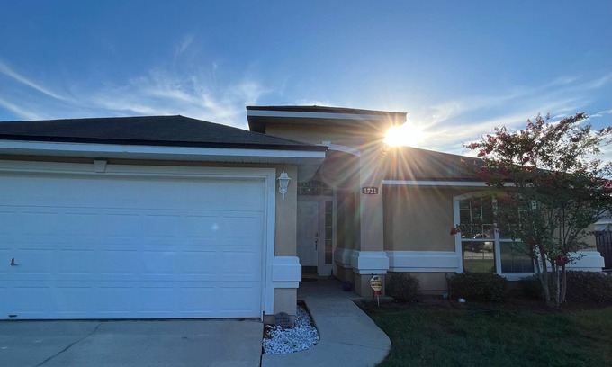 Sweet lighthouse/beachy themed house in quiet neighborhood right off I95 just 15 minutes to beaches and historic downtown. Fenced backyard with pond view, nice big kitchen fully stocked with everything you need to cook at home and save some $$$ on vacation. Newly renovated master bath has nice, big walk in shower. Pet-friendly, NO carpet. 2 Queen bedrooms and 3rd bedroom has two twin beds and a trundle.