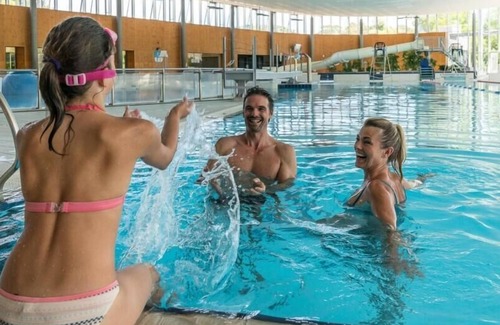 Indoor swimming pool: free access to the Petit Port municipal swimming pool located 100m from the campsite with swimming pool, fun pool with wave ball, relaxation pool, massage jets, giant slide