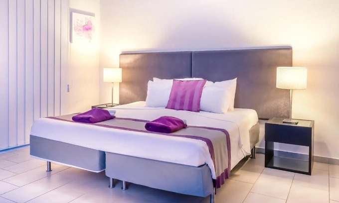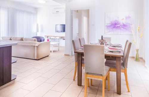 The brand new Napian Suites are located at the heart of Agia Napa, just steps from exciting city attractions and 656 feet from Grecian Beach. It offers stylish accommodations with partial views of the sea and Agia Napa’s main avenue. The spacious suites have a stylish living area with a satellite LCD TV, free Wi-Fi and floor-to-ceiling double glazed windows. Their open-plan kitchen includes an elegant dining area, and the modern bathroom has a jet shower. Several massage treatments are available at the property's Moroccan spa and wellness center, featuring, among others, hot spring bath and a sauna, upon charge. Nearby attractions include the Agia Napa Monastery, the Othello Tower and Venica Palace. Larnaca International Airport is 22 mi away. Self-Catered and Self Check-in Suites.