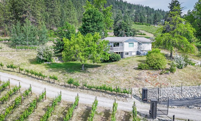 Welcome to a charming countryside retreat in the heart of Naramata! This serene 2 bedroom, 1 bathroom home is set on a picturesque vineyard with breathtaking lake views. Located just a 5 minute drive from downtown Naramata, you’ll enjoy peaceful privacy while being close to local wineries, restaurants, and the Kettle Valley Rail Trail.