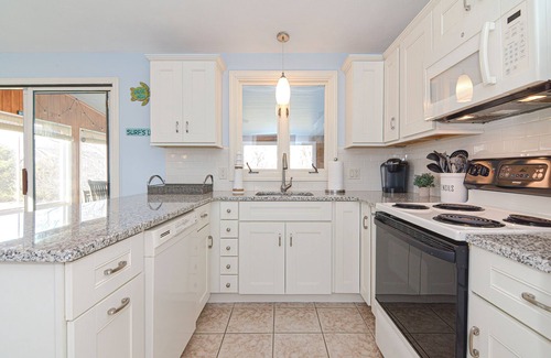 • Updated kitchen, equipped with appliances, toaster, Keurig, dishes, silverware.
