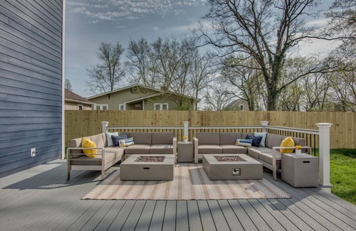 Welcome to Nashville Love, a beautifully curated home nestled conveniently near East Nashville's 5 Points. This 5-bdrm, 3.5-bath retreat blends bohemian charm with modern elegance, creating an inviting haven ideal for all. Enjoy our enchanting outdoor spaces featuring two fire pits and a luxe patio deck. We're minutes from Broadway, Music Row, and iconic Nashville attractions.