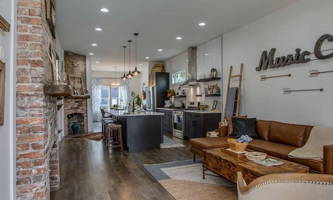 The Bohemian Farmhouse of your dreams awaits in this 5 bedroom, 3.5 bath! Refreshingly unique and yet delightfully familiar, the feeling of home will immediately embrace you upon your first steps inside of "Nashville Love". With beautiful details like exquisite brick mantles, a herringbone kitchen backsplash, and elegant tiling throughout the bathrooms, the rustic modern style featured throughout the space charms from literally every angle! The outdoor areas are equally as magical, with a breathtaking patio deck, a roomy sitting area and table, and (not one but two) firepits, perfect for those cooler nights. There is so much to love about this gorgeous Nashville home, and we cannot wait to host you here!