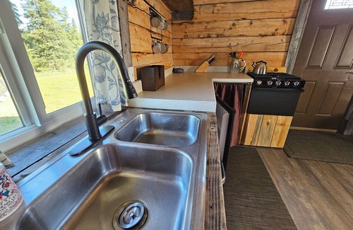 This is THE classic wilderness getaway--a cozy plumbed (May 15 to September 20) log cabin in Alaska's mountain kingdom. Access the best of the Last Frontier's wide open solitude while still on the road system. This cabin has a comfortable hand-crafted queen-size log bed, soft new linens, well-equipped kitchen, bathroom, and bird’s eye loft with double futon and tranquil views. From one of the most exclusive locations INSIDE Wrangell-St. Elias National Park & Preserve, the cabin is just a few minutes' walk to scenic, secluded lakes and hilltop vistas with exceptional wildlife viewing, birding, fishing, and recreational opportunities. The Raven Cabin is the perfect space for your Great North adventures or quiet getaway to rest and recharge—without the hassle of an expensive and weather-dependent air or water taxi. During cooler months (September 20 to May 15), guests may use the plumbed wash rooms (sink, toilet, shower) in the main lodge just steps away. Pet friendly, with prior approval, $75 fee per stay. Non-smoking.