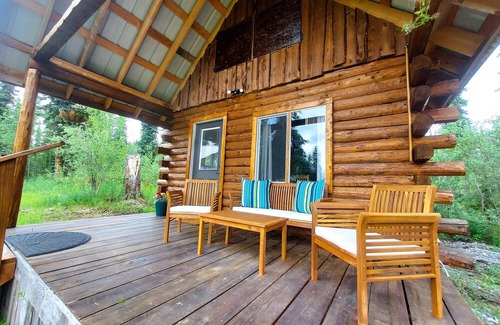 From one of the most exclusive locations INSIDE Wrangell-St. Elias National Park & Preserve, THE classic Alaskan experience--a cozy log cabin in the Last Frontier’s mountain kingdom. Access the best of great northern wildness while still on the road system. Just a few minutes' walk to scenic, secluded mountain lakes and hilltop vistas with exceptional wildlife viewing, birding, and fishing opportunities…the possibilities for your adventure are endless. With two comfortable hand-crafted queen log beds (one on main level, one in loft), soft new linens, well-equipped kitchen, and flat screen TV/DVD with huge borrowing library, the Alaskan Cabin is the perfect base camp for your bucket trip adventures, special occasion trip, or just a quiet getaway to unplug, rest, and recharge. It has private en suite bathroom from May 15 to September 20; in winter, guests may use fully plumbed washrooms (sink, toilet, shower) in the main lodge just steps away. Pet friendly, $75 fee per stay. Non-smoking.