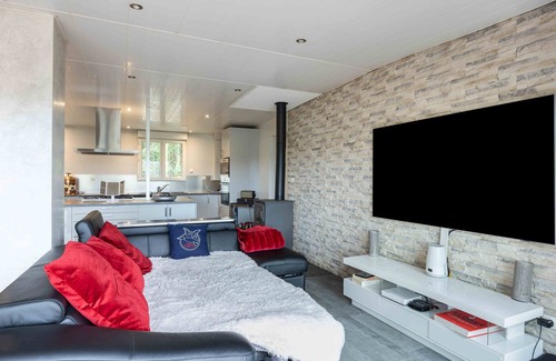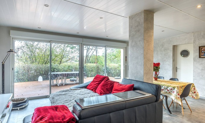 - A living room of 40 m² with flat screen TV, Wifi (optical fiber), sofa bed (double) and dining area.
