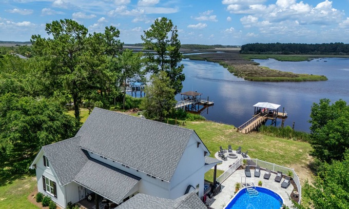 Nature Lovers Escape Waterfront Pool Dock Sunsets Fishing Kayaking Savannah | Apartment in Midway