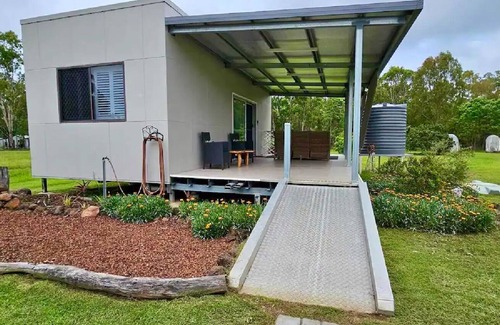 An open plan cabin with a large deck that is very modern and new. There's a ramp to deck for anyone needing wheel chair access. We spared no expense on the fit out especially the bed. King sized bed that be split into 2 beds for either friends or couples. good sized deck with lounge and deck chairs.
