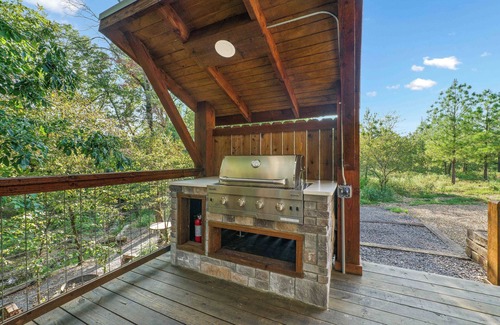 NAVAJO RUG is the perfect family & friends getaway! Built on a bluff above a clear spring-fed creek the cabin accommodates up to 10 guests offering two primary bedrooms, three full baths, and a spacious gaming loft. Explore the many trails & back roads on your ATVs/ Mountain Bikes or Walk/ Hike the gorgeous outdoors. There is something for everyone here, rain or shine. Book your stay today and immerse yourself in the tranquility of our hideaway. Fun and adventure await you at The Navajo Rug!