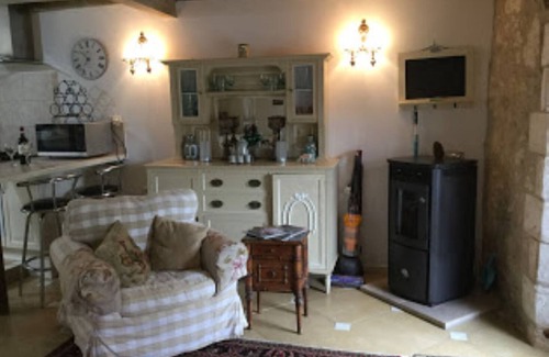 Pretty little cottage/gite in old farmhouse with 2 bedrooms, shower room and open plan living room and kitchen. Rural and peaceful, but only 10mins from the riverside beaches of Aubeterre, St Aulaye and Lake La Jemaye, and their various restaurants and watersports. Within an hour of the world famous cognac distillery, and the world heritage site of St Emillion, for its famous wines.