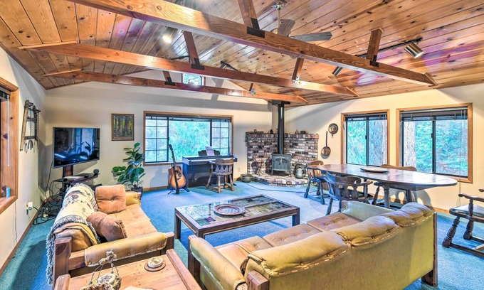 Travel on scenic Highway 88 to a rural escape at this tranquil and tree-nestled 3-bedroom, 2-bathroom cabin. Surrounding this Pioneer vacation rental, you’ll find the marbleized limestone of Indian Grinding Rock State Historic Park, the reflective waters of Lake Tabeaud, and the incredible formations of Black Chasm Cavern National Landmark. With a game room filled with instruments and digital entertainment, 2 furnished decks, and a fire pit under the clear sky, you may not ever want to leave.