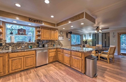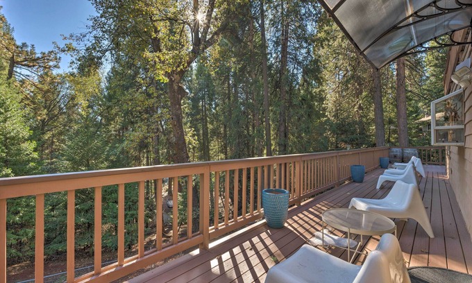 Make this modern and luxurious 3-bedroom, 2-bath cabin your home away from home! Nestled in the Eldorado Forest, this small-town hideaway comes with a pellet-burning stove, 4 Smart TVs, and a wraparound deck with breathtaking wooded views. This beautiful vacation rental features central cooling and heating, high-speed internet, and a backup generator. With a great location close to Kirkwood Ski Resort, golf courses, water activities, hiking trails, and much more, this is an ideal getaway!