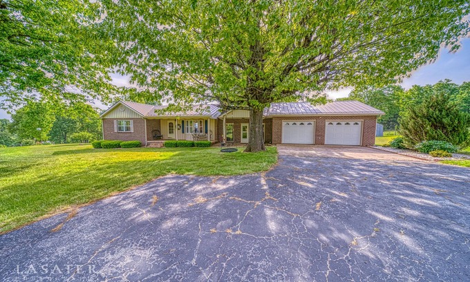 From the minute you pull onto the long, fully paved driveway (off of Hwy 74) and the picturesque setting you’ll set yourself at peace by the surroundings and BIG sky. High in the Ozarks, the breeze and wildlife never stop. Bluebird House is 2800 sq’ with 2 living rooms, one living room having a brand new sleeper sofa, kitchen, full bath and 2 bedrooms on main level, the downstairs living quarters offers a large bedroom, office area and full bath. Enjoy the seclusion downstairs where it gets as dark as you want! The private garage is big enough for any vehicle or 4 cycles. And NO DIRT ROADS here! Motorcycle and sports car approved.