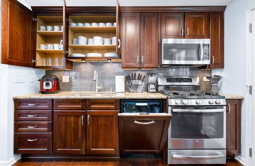 - We provide a coffeemaker and tea kettle, along with coffee, cream, sugar, and filters, so you can start your day with a cup of your favorite beverage.