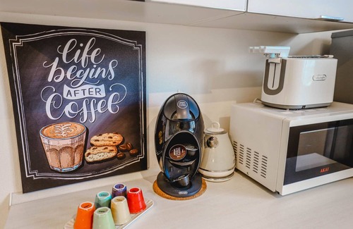 Prepare a home-cooked meal in the kitchenette, complete with an oven, a stovetop, and a refrigerator, as well as a coffee maker, an electric kettle, and a microwave. Bathroom amenities include a hair dryer, a bidet, and towels. And you can even pack a bit lighter because there's a washer and dryer. Other amenities include bed sheets, an ironing board, air conditioning, and a dining table.