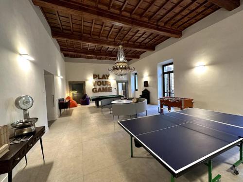 Free Wifi is available throughout the property and Vallelunga is 14 miles away. Featuring a balcony and garden views, the spacious apartment includes 2 bedrooms, a living room, flat-screen TV, an equipped kitchen, and 2 bathrooms with a bidet and a bath. Towels and bed linen are available in the apartment. The accommodation is non-smoking. You can play billiards, table tennis, and darts at Nel cuore di Ronciglione, 36 Corso Umberto. An indoor play area is also available for guests at the apartment. Fiumicino Airport is 40 miles from the property.