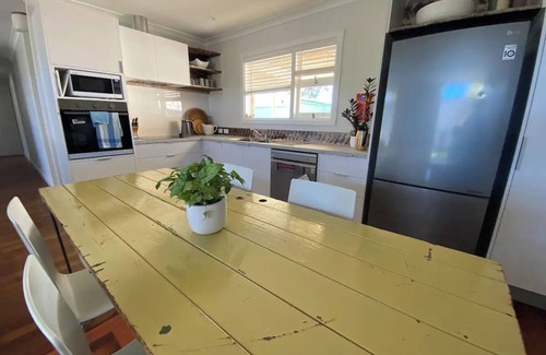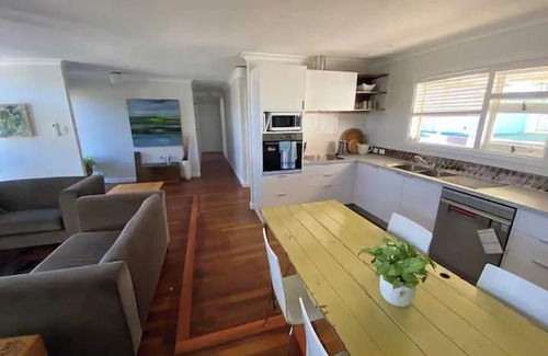 There is an EV charger for use by guests, open plan light and bright living, a fully equipped kitchen, super comfy queen size beds, and desk in a separate room for a home office space.