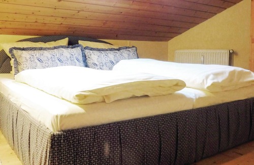 Your apartment is located on the 1st floor, which you can reach via an outside staircase. Here you can enjoy peace and nature. Surrounded by a meadow orchard, the complex is located on a small stream.