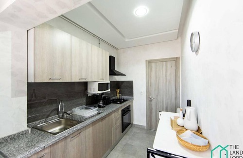 New apartment with swimming pool in a high-end residence in Ain Zaghouan Nord. The apartment is beautifully furnished and has all the amenities you need for a pleasant stay: unlimited internet, Smart TV, fully equipped kitchen.
