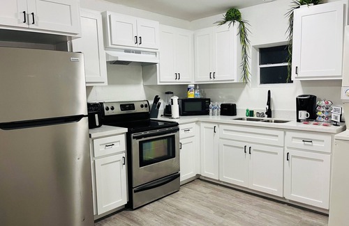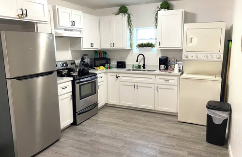 It is located within minutes of McAllen's top hospitals, McAllen International Airport, La Plaza Mall, and vibrant shopping centers. It is also a short walk from South Texas College and restaurants and shops on US Business 83 street! This private 2 bed, 1 bath apartment also features a 55' in. Smart TV, Queen-Sized Beds, a fully equipped kitchen, dining area and beverage station with free coffee!
