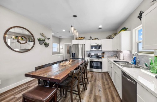 This brand new, beautifully upgraded home offers plenty of space for up to 10 guests with modern features and custom decor throughout.
