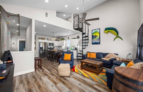 Escape to Matagorda Beach Retreat, a 4-bedroom plus 1 loft room, 3-bathroom oasis nestled along the scenic Colorado River. Spend your days kayaking, crabbing, or fishing from the private pier with a bright fishing light for nighttime fun. While the beach is nearby for sun and sand lovers, the tranquil riverfront setting offers stunning sunsets and a peaceful retreat. Whether you're seeking adventure or relaxation, this getaway provides the perfect blend for your next vacation.