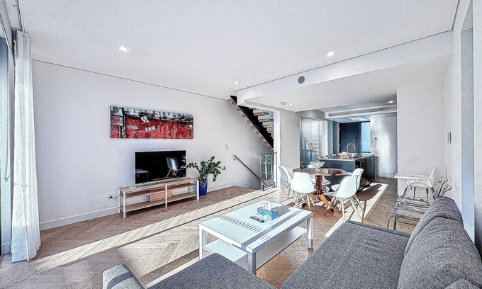 This townhouse has 4 levels. Underground floor has 2 cars garage parking space. Ground floor is an open plan living with 55" smart TV's (Netflix included), sofa bed, indoor dinning area and outdoor dining area. The kitchen is well equipped with all the necessary appliances, pots and pans etc. The backyard has BBQ grill, table and chairs combined with fresh air in the garden create a unique and enjoyable environment to spend with your family.