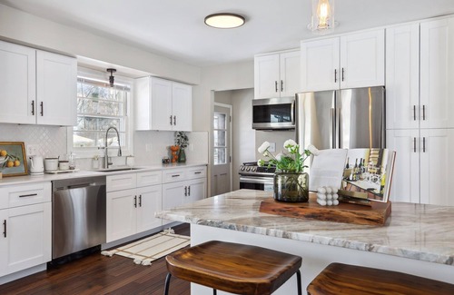Our kitchen is newly remodeled and comes with a wine fridge to store your beverages at the perfect temp! We provide coffee and tea for our guests as well :)
