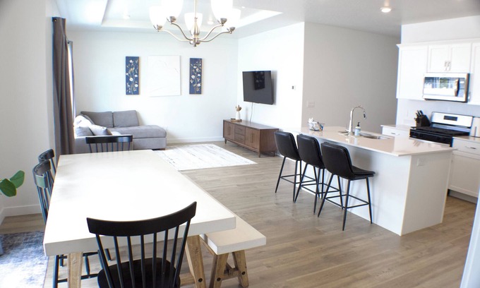 This 5-bedroom house in Spanish Fork is perfect for your escape. With 1 king bed and 6 queen beds, it's fantastic for families or groups. 3 full bathrooms, enclosed backyard and a large washer and dryer! It's easy to see why you'll be able to unwind at our place.