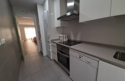 Kitchen with all appliances Refrigerator, Washing Machine, Dishwasher, Oven, Microwave and Induction hob.