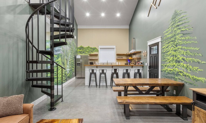 Please note that this structure is a "First of Its Kind" Duplex Barndominium. This listing pertains solely to the right side of the structure as you face its front. Indulge in relaxation with the luxury of your own private hot tub and outdoor shower on each side. Additionally, a shared breezeway awaits, featuring delightful outdoor games for some friendly competition. Relaxing by a cozy fire pit sound fun? This inviting space offers the perfect opportunity to connect with fellow travelers and make new acquaintances, as this space is also shared.