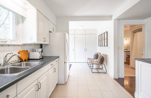 Amenities include: coffee maker, toaster, hairdryer, Juno premium Canadian made mattress, ROKU TV, Mini Google Home, hotel grade linens and towels, and a huge private backyard with deck, seating, picnic table, BBQ.