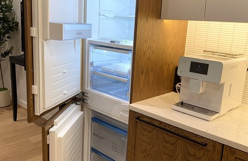 The condo is 1 of only 15 units in 2525Penn, a boutique collection of classically modern 1- and 2-bedroom condominiums along famed Pennsylvania Avenue. Living here, you are rooted in a historic neighborhood with a connection to the best modern conveniences of the West End and Georgetown. The property features restored historic details and 9’ ceilings, white oak hardwood floors, and recessed lighting throughout. Custom wood base cabinetry in the kitchen conceal appliances while white flat panel upper cabinets blend with walls. High-end European designer fixtures and appliances are featured throughout the unit including quartz countertops, Nordic pendant lights, and Bosch appliances.