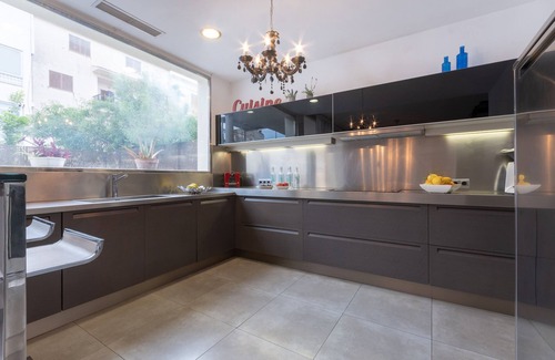 In the vitroceramic open plan kitchen, refrigerator, microwave, oven, freezer, dishwasher, dishes/cutlery, kitchen utensils, coffee machine, toaster, kettle and juicer are provided.