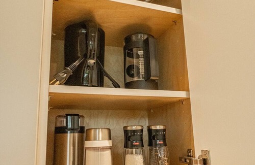 There are 2 full bathrooms with heated flooring on the ground floor and a half bath on the main floor. The bathroom comes stocked with local maker the Hobbyist shampoo and conditioner. There is a hair dryer and enough towels for everyone (6 people). The primary ensuite has a large walk in shower and the secondary ensuite offers a tub / shower combo.